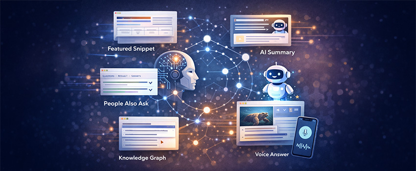 AI-driven snippets are search results where the engine uses machine learning models to extract, summarize, or generate answers directly from indexed content. These include: