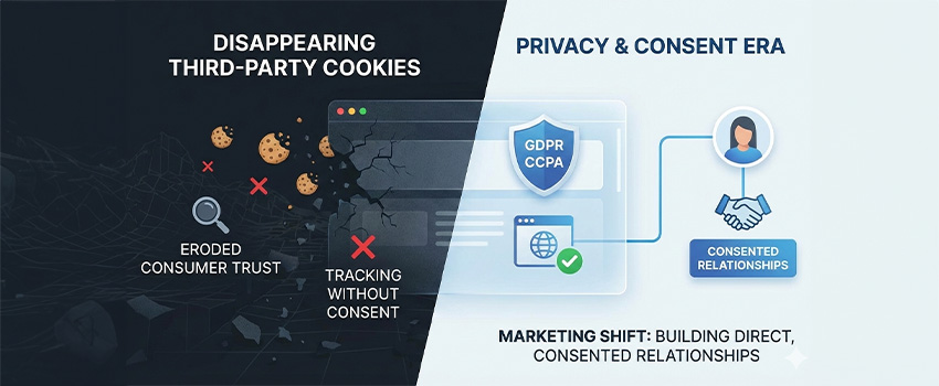 Third‑party cookies have eroded consumer trust by tracking users across sites without clear consent. In response:
